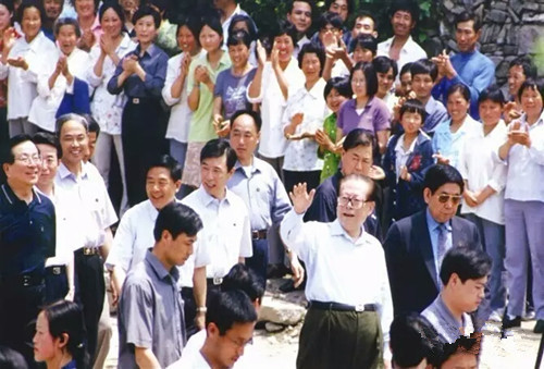 2001年5月21日上午10時(shí)25分至55分,時(shí)任中共中央總書(shū)記、國家主席、中央軍委主席江澤民,在曾慶紅、曾培炎和中共安徽省委書(shū)記王太華等人的陪同下,來(lái)到了黃山腳下的古村落──旌德縣江村進(jìn)行視察,受到了江村村民的熱烈歡迎,村民們不斷高呼:江書(shū)記好!總書(shū)記好!江澤民也不斷地向村民們揮手致意說(shuō):同志們好!鄉親們好! 五百年前是一家 21日上午10時(shí)30分,江澤民一到江村,首先來(lái)到了江村歷史文化展覽室內(溥公祠),聽(tīng)取了導游劉四清關(guān)于江村區位、歷史、名人等方面的介紹,江澤民一邊聽(tīng)講、一邊不斷點(diǎn)頭,特別是對導游介紹到江希舜、江澤涵時(shí),更感興趣。接著(zhù),江澤民一行仔細認真地觀(guān)看了江村的陳列室,在看到“江春澤簡(jiǎn)介”時(shí),江澤民問(wèn)曾慶紅,是否是上海的某局長(cháng)?曾慶紅回答說(shuō),上海那位是個(gè)男的。導游說(shuō):這位江春澤是位女性,江村人,原國家計委宏觀(guān)經(jīng)濟司司長(cháng),經(jīng)濟學(xué)家。在看到江樹(shù)峰的《憶父吟》一詞時(shí),導游介紹:這首詩(shī)是從《江都縣志》中抄錄的,江澤民笑著(zhù)說(shuō),有這么回事嗎?我怎么不知道(笑)。    注:《憶父吟》一詩(shī)筆者在香港《廣角鏡》1998年第一期《江澤民家譜溯源》一文中曾介紹過(guò)。詩(shī)中寫(xiě)道:“頭橋仙鎮懸壺久,勞人茅屋藥能春,徽州曾應秀才試,多蒙姑丈朱右村``````” 等句子。 在觀(guān)看“歷代祖像” 時(shí),劉四清介紹說(shuō),這些都是從家譜中復印放大的,并指著(zhù)其中的一幅畫(huà)像說(shuō),這就是江淹,江澤民問(wèn)“是不是文學(xué)家?” ,劉四清回答說(shuō),是的,是南北朝時(shí)著(zhù)名的文學(xué)家,曾當過(guò)宣城太守,歷史上的成語(yǔ)江郎才盡指的就是江淹。當江澤民一行參觀(guān)江村展覽室后,有人:“江姓,五百年前是一家。 【江澤民在立本堂題字】 其間,江澤民還問(wèn)到:” 字怎么寫(xiě)?旁邊有人說(shuō):方子旁,右上是個(gè)人,下面是個(gè)生字。江澤民寫(xiě)好后,笑著(zhù)問(wèn)旁邊的人說(shuō):“還好嗎?“好,太好了。      古老的江村,這么一個(gè)文化底蘊十分深厚的地方,在階級斗爭時(shí)期,一直被視為“反動(dòng)堡壘” ,屬于專(zhuān)政“對象” ,因“左” 的干擾,文物破壞極其嚴重。村里原有八祠十八坊,書(shū)院、書(shū)屋9處,村口的獅山、象山把守,香火旺盛,可現在只剩下祠堂兩座,也岌岌可危,瀕于倒塌,牌坊兩座也舊破不全,書(shū)院和書(shū)屋也蕩然無(wú)存,不翼而飛,獅、象兩山文物夷盡。 【二十四節氣花瓶】 “胡適對聯(lián)“為民族主義努力奮斗,于傳種問(wèn)題積極研求?!笆钦孥E嗎?“是真跡?!耙⒁獗4婧??!拔母铩拔幕蟾锩鏇](méi)有文化! 【江氏宗譜】 【父子進(jìn)士坊】 ” 曾慶紅在一旁補充說(shuō): 【江氏宗祠】 老人孩子最幸福 ” 江澤民點(diǎn)了點(diǎn)頭。      江村人民將永遠銘記這個(gè)歷史上最光榮最幸福的時(shí)刻。 鼎盛時(shí)期八萬(wàn)人口,有著(zhù)近1400年歷史的古村落,誕生了126位進(jìn)士、舉人、博士的藏龍臥虎之地。 國家4A級風(fēng)景區、中國歷史文化名村、全國重點(diǎn)文物保護單位——江村古建筑群、國家紅色旅游經(jīng)典線(xiàn)路、中國傳統村落、中國最美古村落、江澤民主席祖居地——江村歡迎您! *江村景區地址:安徽省宣城市旌德縣白地鎮江村; *江村旅游微信公眾號:anhui_jiangcun