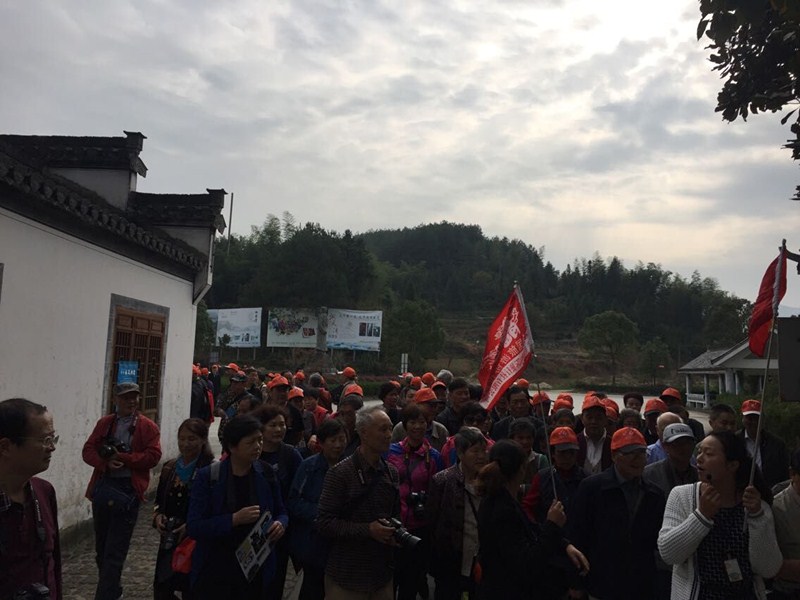 由黃山國際旅行社承辦的“武漢電視臺旅游大團購——快樂(lè )之旅”文化旅游系列團再次走進(jìn)“中國江村、風(fēng)水寶地”。2015年11月6日約8:30,五部旅游大巴車(chē)緩緩駛進(jìn)千年江村,200多名游客陸續下車(chē),在江村景區廣場(chǎng)江上青烈士豎像前合照留影,景區負責人也早早準備好各項接待工作,五名景區講解員分別帶領(lǐng)各小組游客步入景區參觀(guān)。