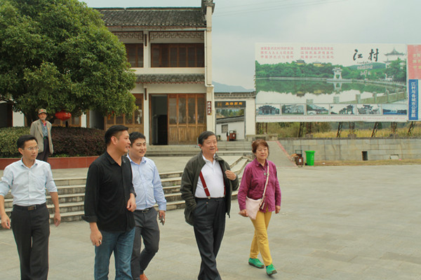 安徽省人民政府副省長(cháng)花建慧一行視察中國歷史文化名村、全國重點(diǎn)文物保護單位——江村古建筑群。       2015年8月13日上午,分管全省旅游的花副省長(cháng)在宣城市政府韓軍市長(cháng)、副市長(cháng)旌德縣縣委書(shū)記周密、市旅委主任周曉紅、旌德縣政府副縣長(cháng)王斌、張蕾等領(lǐng)導的陪同下,視察江村并對景區存在的問(wèn)題及今后發(fā)展的方向,作了重要的指示。         花省長(cháng)一行首先到游客休息廳檢查景區電子觸摸屏,瀏覽領(lǐng)導人視察江村的一些圖片,在景區售票處了解每日游客量情況。之后參觀(guān)了聚秀湖、孝子祠、老街、父子進(jìn)士坊、江氏宗祠、溥公祠、碑園、江澤民主席題字處等景致。