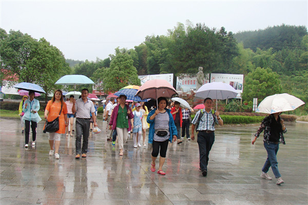 南京游客冒雨參觀(guān)中國江村風(fēng)水寶地