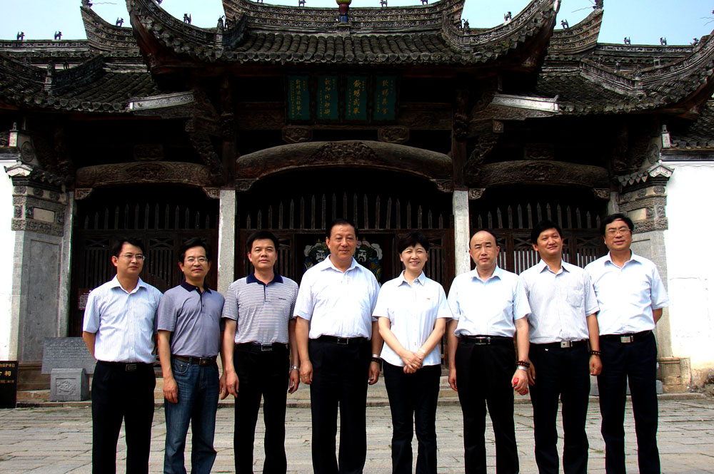 2012年6月8日下午,國家計生委主任王俠一行在安徽省政府副省長(cháng)梁衛國的陪同下,來(lái)到中國歷史文化名村、全國重點(diǎn)文物保護單位——江村視察。王俠主任一行先后參觀(guān)了江村聚秀湖、孝子祠、江村老街、父子進(jìn)士坊、江氏宗祠、溥公祠等多處國保建筑。