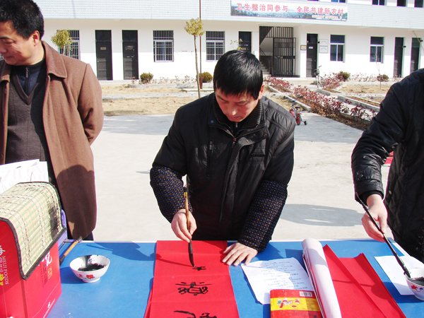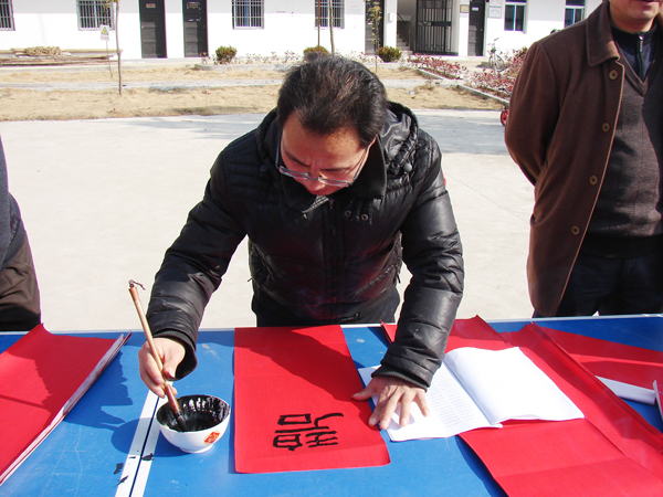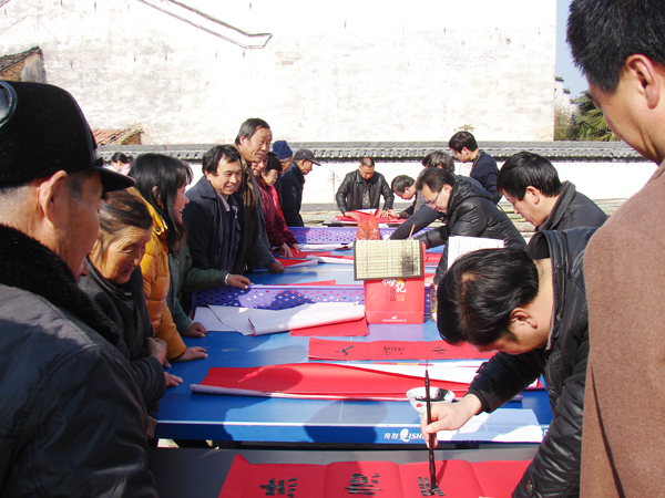 該活動(dòng)由江村村委會(huì )與江村旅游公司共同組織,邀請了本縣幾位實(shí)力書(shū)法家書(shū)寫(xiě),他們分別是:安徽省書(shū)法家協(xié)會(huì )會(huì )員縣書(shū)協(xié)秘書(shū)長(cháng)程玉隆、理事江強宏、會(huì )員季小平、副主席汪家輝,還特邀了江村景區管委會(huì )主任秦義兵、白地鎮派出所指導員唐家發(fā)二位書(shū)法愛(ài)好者。