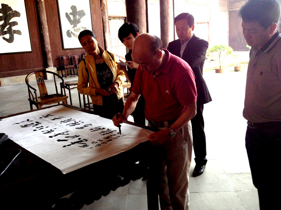 2013年5月11日上午,我國著(zhù)名詞作家賀東久將軍來(lái)風(fēng)水寶地、偉人故里——千年江村參觀(guān),賀老師先后游覽了江上青烈士豎像、聚秀湖、孝子祠、江村老街、父子進(jìn)士坊、江氏宗祠、溥公祠等,最后在溥公祠題字“走進(jìn)江村尋古意、我來(lái)旌德寫(xiě)新歌”。