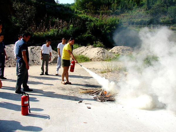 在十一黃金周到來(lái)之前,江村旅游公司組織全體員工(除休假、帶客上班的導游)學(xué)習消防安全知識,進(jìn)一步要求員工在突發(fā)性火災發(fā)生時(shí),能沉著(zhù)、冷靜并合理的掌握使用滅火器材,做到人人懂安全、人人會(huì )消防。會(huì )后在廣場(chǎng)開(kāi)展了滅火實(shí)戰演練 。