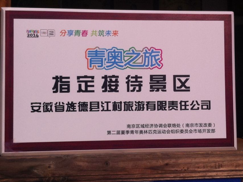 江村景區作為2014年南京青年奧運會(huì )的首批指定接待景區,于12月6號在揚州瘦西湖風(fēng)景區參加了青奧之旅的授牌儀式。青奧之旅首批指定接待景區、推介景區一共20家,宣城市只有江村景區和龍川景區被授牌為指定景區。當天,各市的發(fā)改委領(lǐng)導以及20家景區的主要負責人參加了授牌儀式,其中,汪家輝總經(jīng)理代表江村景區出席授牌儀式。