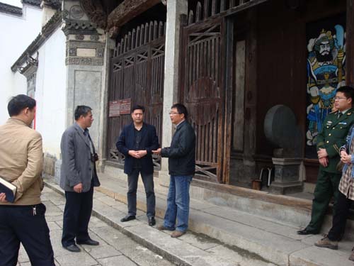 2014年4月23日,省文物局副局長(cháng)楊立新帶領(lǐng)文物消防第二督查組消防總隊法規處副處長(cháng)周志華、省文物局主任科員戴寶寬、安徽建筑大學(xué)建筑專(zhuān)家(教授)金乃玲等一行6人,在旌德縣文廣新局李強局長(cháng)的陪同下來(lái)江村古建筑群督查指導文物消防工作。