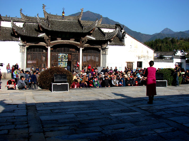 11月14日下午,由旌德縣縣委宣傳部承辦,縣文聯(lián)、白地鎮黨委、政府及江村旅游公司協(xié)辦的“戲劇名家惠民演唱會(huì )”,一場(chǎng)匯聚了安徽地方戲特色的五大戲曲劇種徽劇、黃梅戲、廬劇、泗州戲和花鼓燈戲的演出,在江村溥公祠前拉開(kāi)序幕。戲臺下人流如織,熱鬧非凡;十里八鄉的群眾得知名家送戲到江村,早早地自備長(cháng)凳來(lái)看戲。