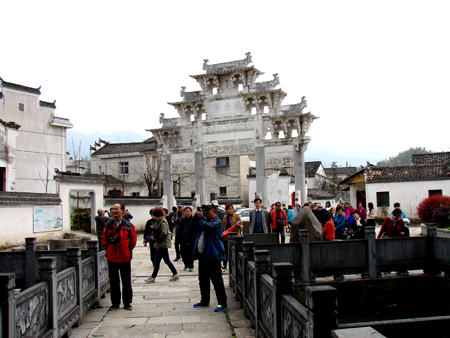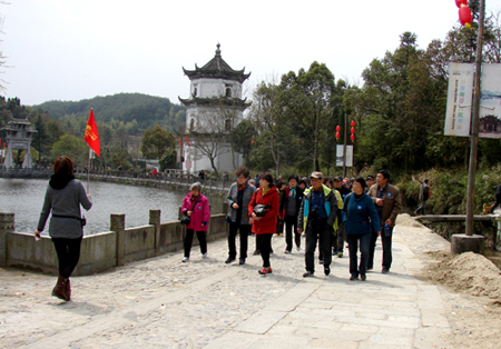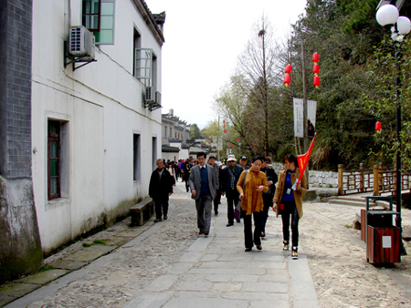 游客參觀(guān)中國江村、風(fēng)水寶地。