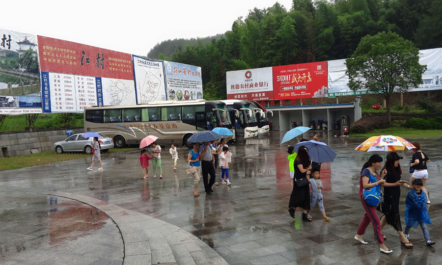 南京游客冒雨參觀(guān)中國江村風(fēng)水寶地