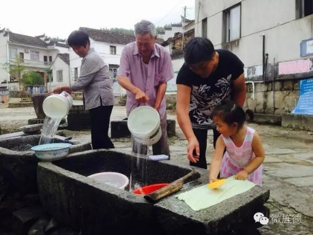 清晨的古井旁很是熱鬧,兩個(gè)大大的石頭水槽,已有些年代。阿姨、大媽們洗著(zhù)衣服和蔬菜,歡聲笑語(yǔ)彌漫著(zhù)整個(gè)村莊。從這里,江村人開(kāi)始了新一天的生活,沒(méi)有一點(diǎn)慌張,只有祥和。