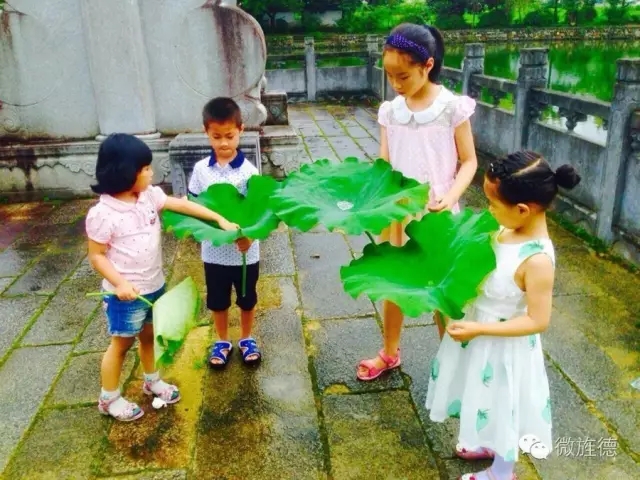 聚秀湖畔,幾個(gè)孩童手拿荷葉,正在玩著(zhù)滾水珠的游戲,荷葉中間,有少量的水,要在不散落水珠的前提下,將水在荷葉中最大幅度的滾動(dòng)。
