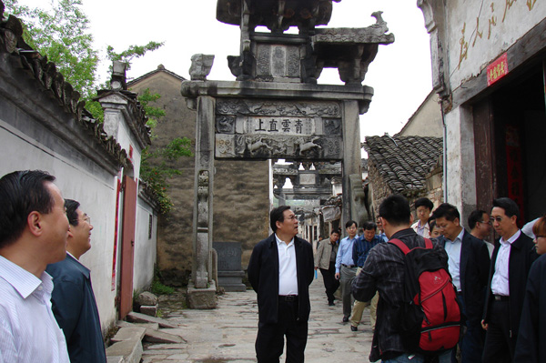 趙局長(cháng)一行先后參觀(guān)了江村水口聚秀湖、孝子祠、溥公祠、老街、江氏宗祠等全國重點(diǎn)文物保護單位建筑,對江村的深厚的文化及對文物的保護給予了充分的肯定.