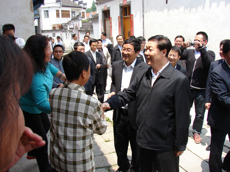 2011525上午,安徽省委書(shū)記張寶順一行來(lái)旌德縣江村視察。隨行陪同的領(lǐng)導有,宣城市委書(shū)記高登榜、旌德縣委書(shū)記張光勇、旌德縣政府縣長(cháng)李孝云、旌德縣委副書(shū)記黎斌、旌德縣縣委辦主任高百金、旌德縣政府副縣長(cháng)孫愛(ài)華等地方領(lǐng)導的陪同下,先后參觀(guān)了江村水口聚秀湖、孝子祠、江村老街、父子進(jìn)士坊、江氏宗祠、溥公祠等景致。參觀(guān)途中不時(shí)的向村民揮手問(wèn)候,并走訪(fǎng)了江村的老支書(shū)江顯龍老先生。